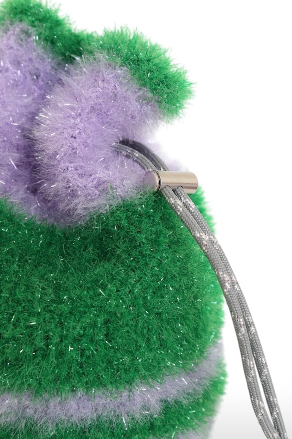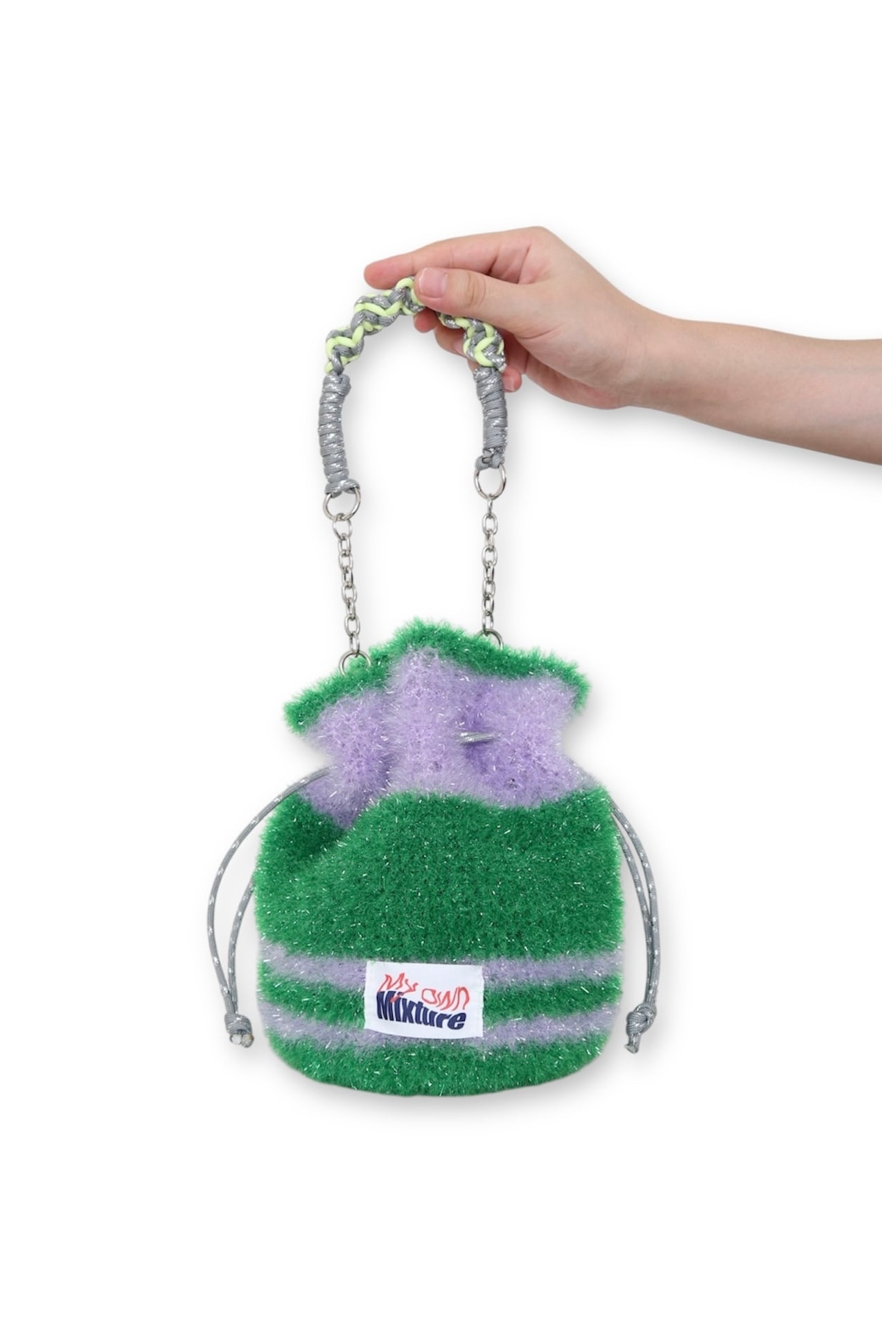 キラキラの糸で編んだトレンド感ある巾着バッグです。