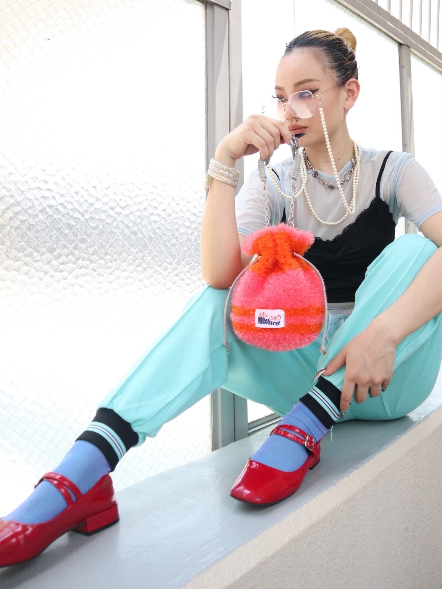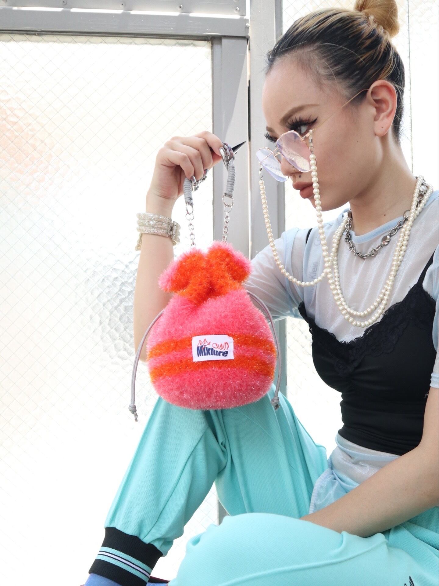 【handmade】shiny crochet mini bag
