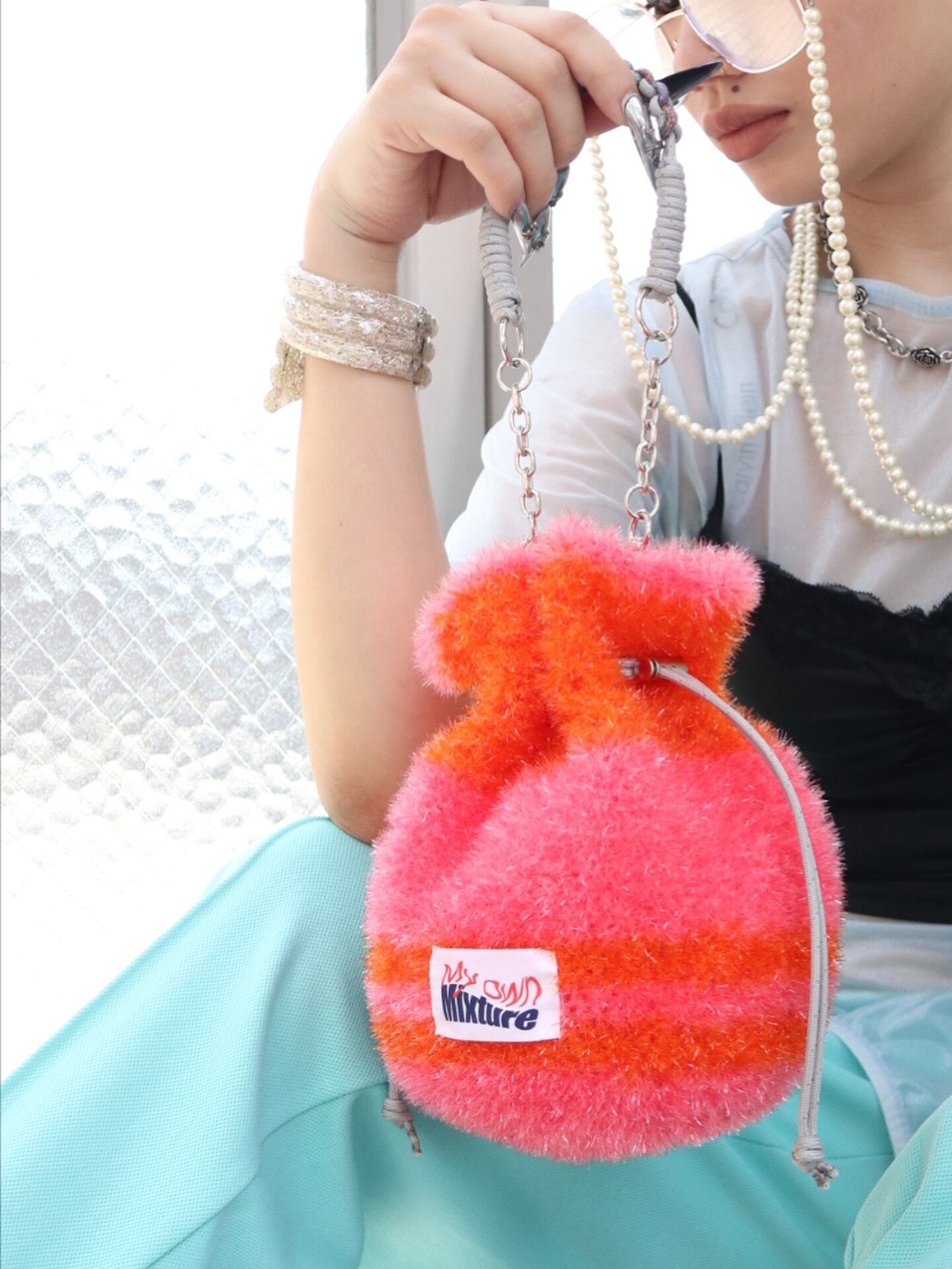 キラキラの糸で編んだトレンド感ある巾着バッグです。