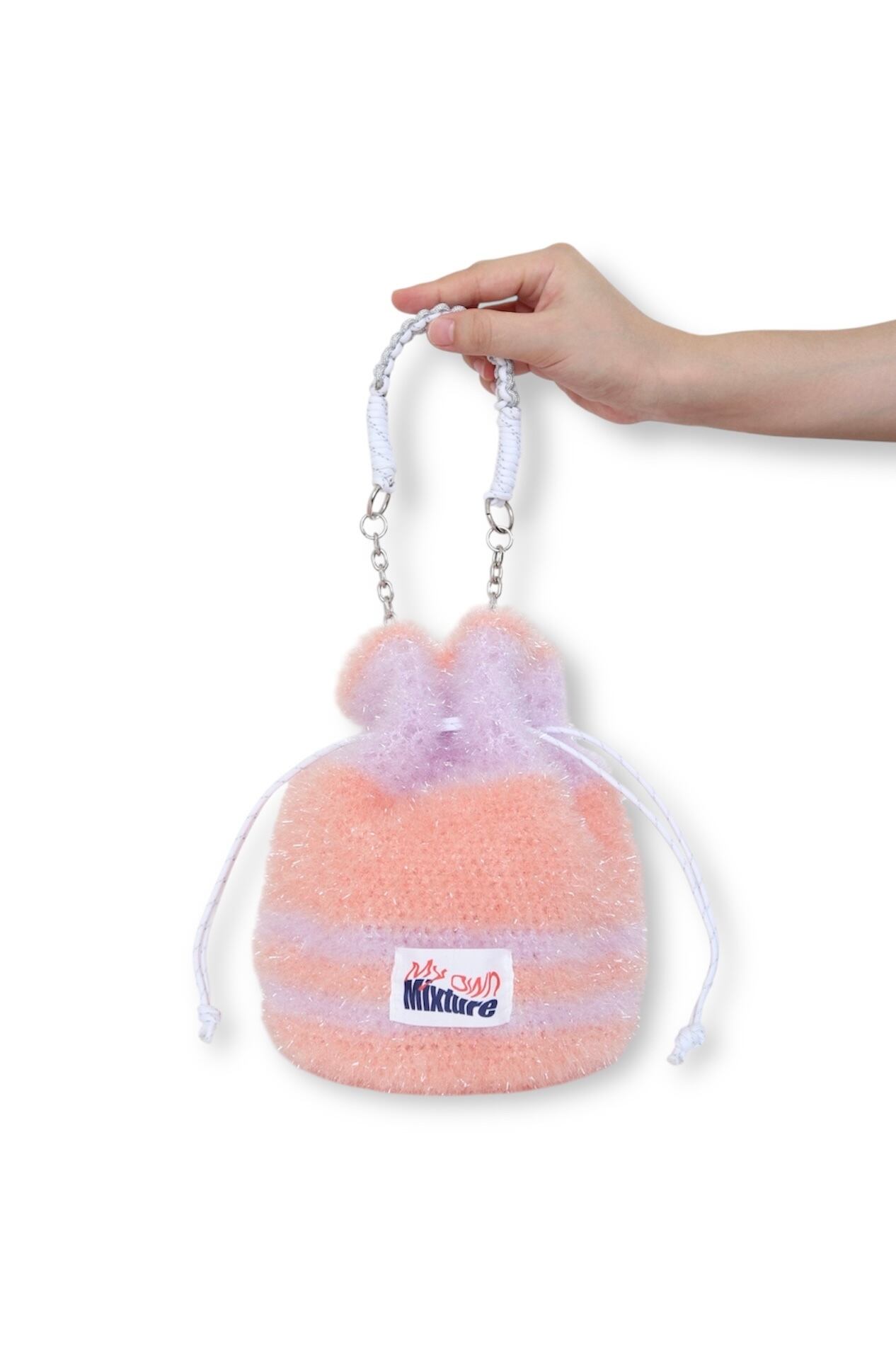 キラキラの糸で編んだトレンド感ある巾着バッグです。