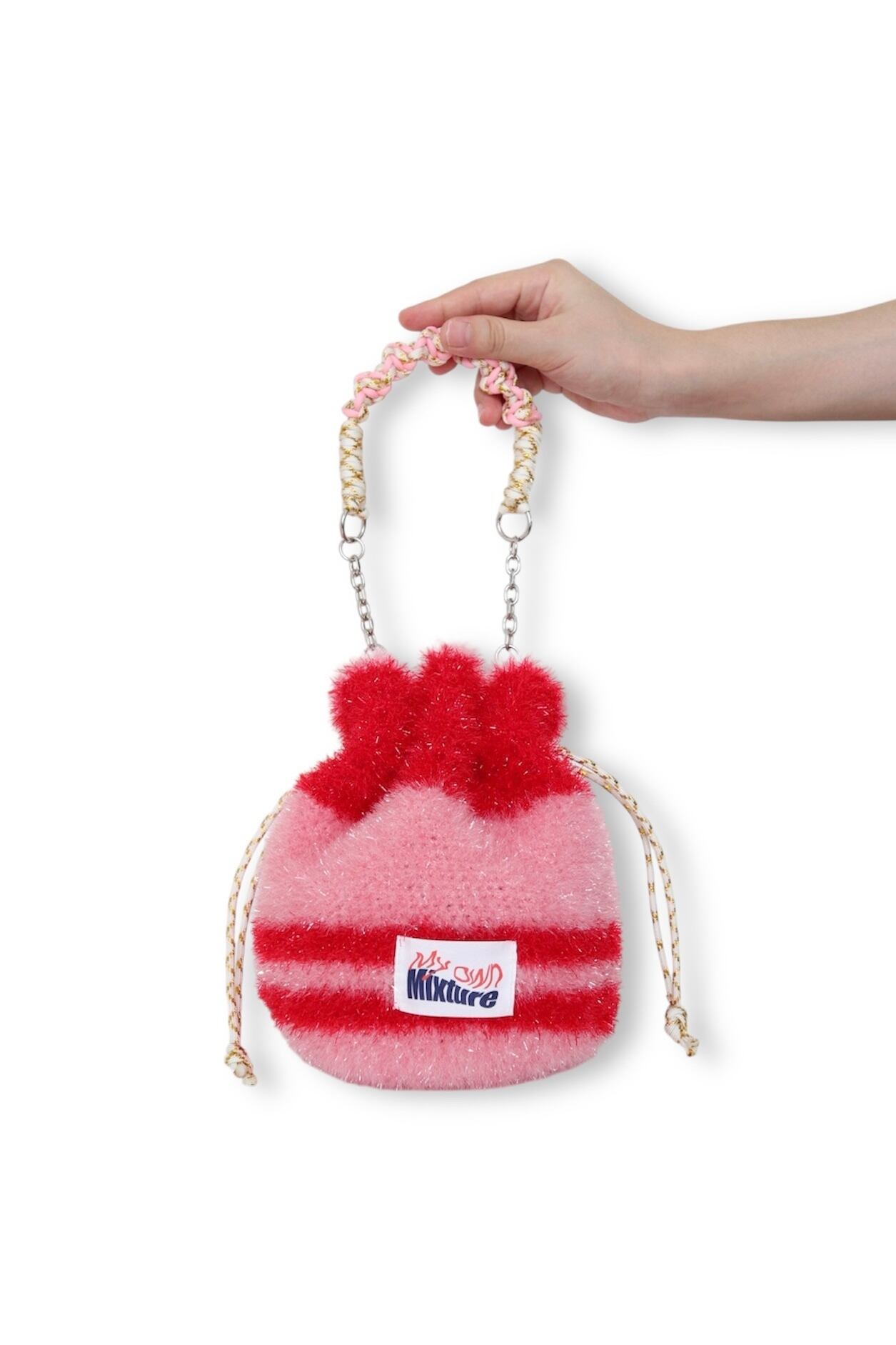 キラキラの糸で編んだトレンド感ある巾着バッグです。