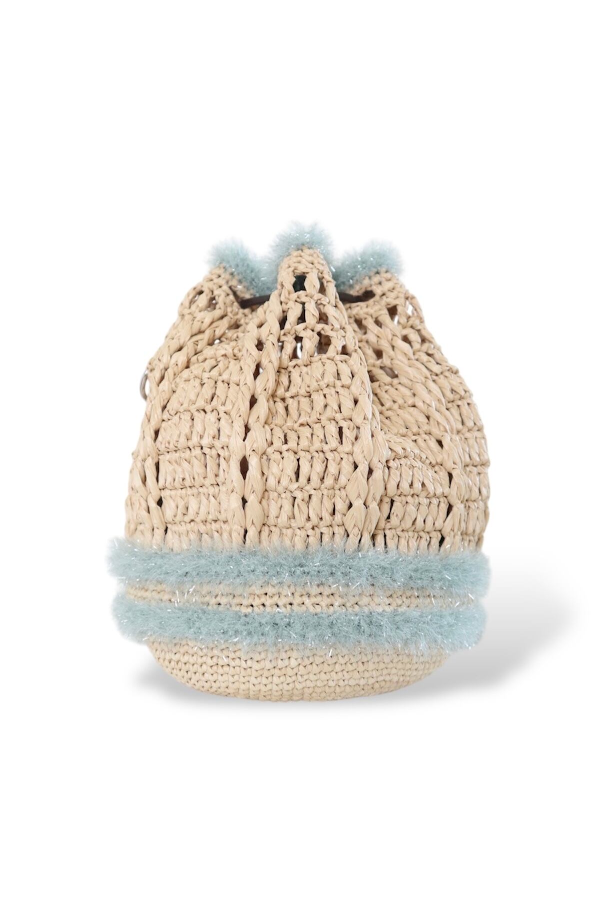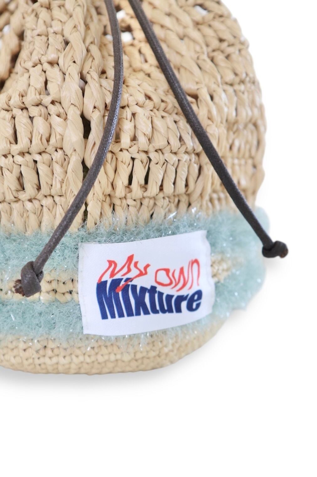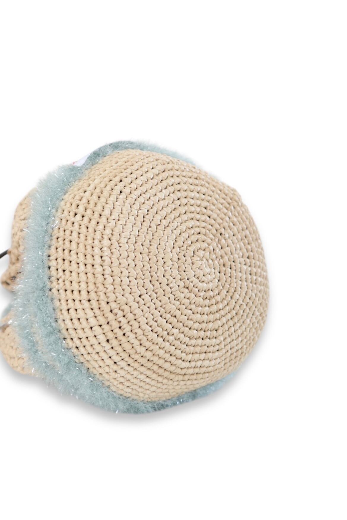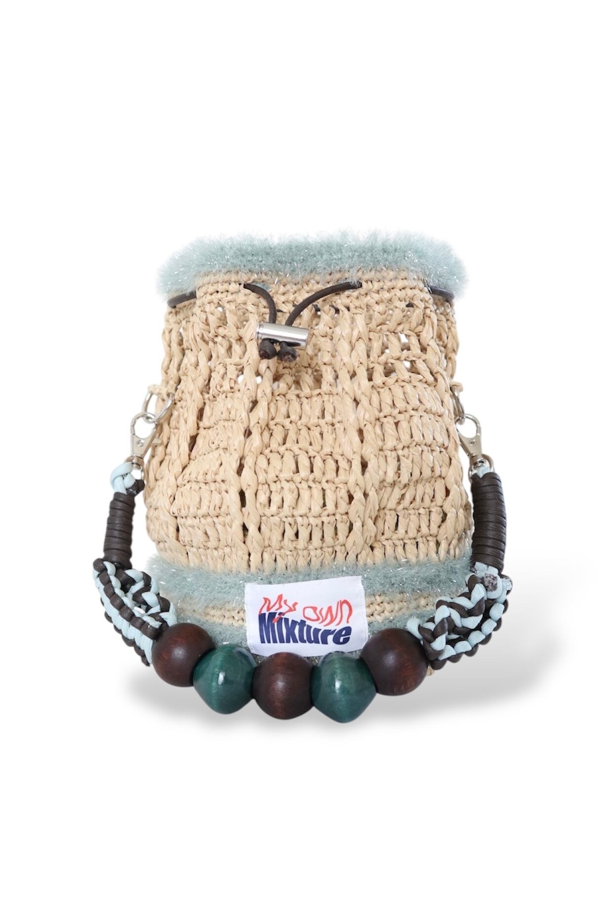 木材の再生繊維を使用した糸とキラキラの糸を差し色に掛け合わせた、涼しげな巾着バッグです。