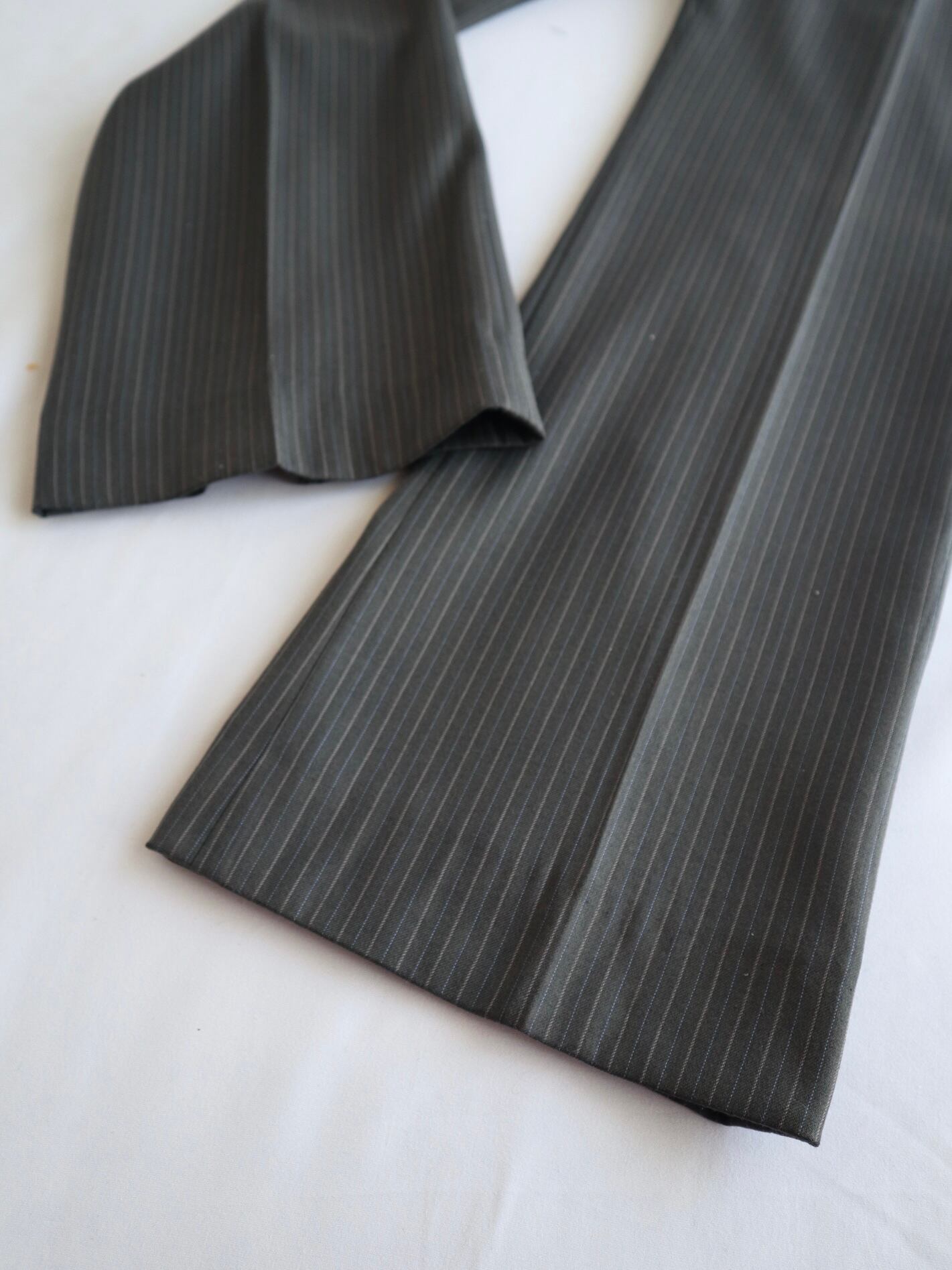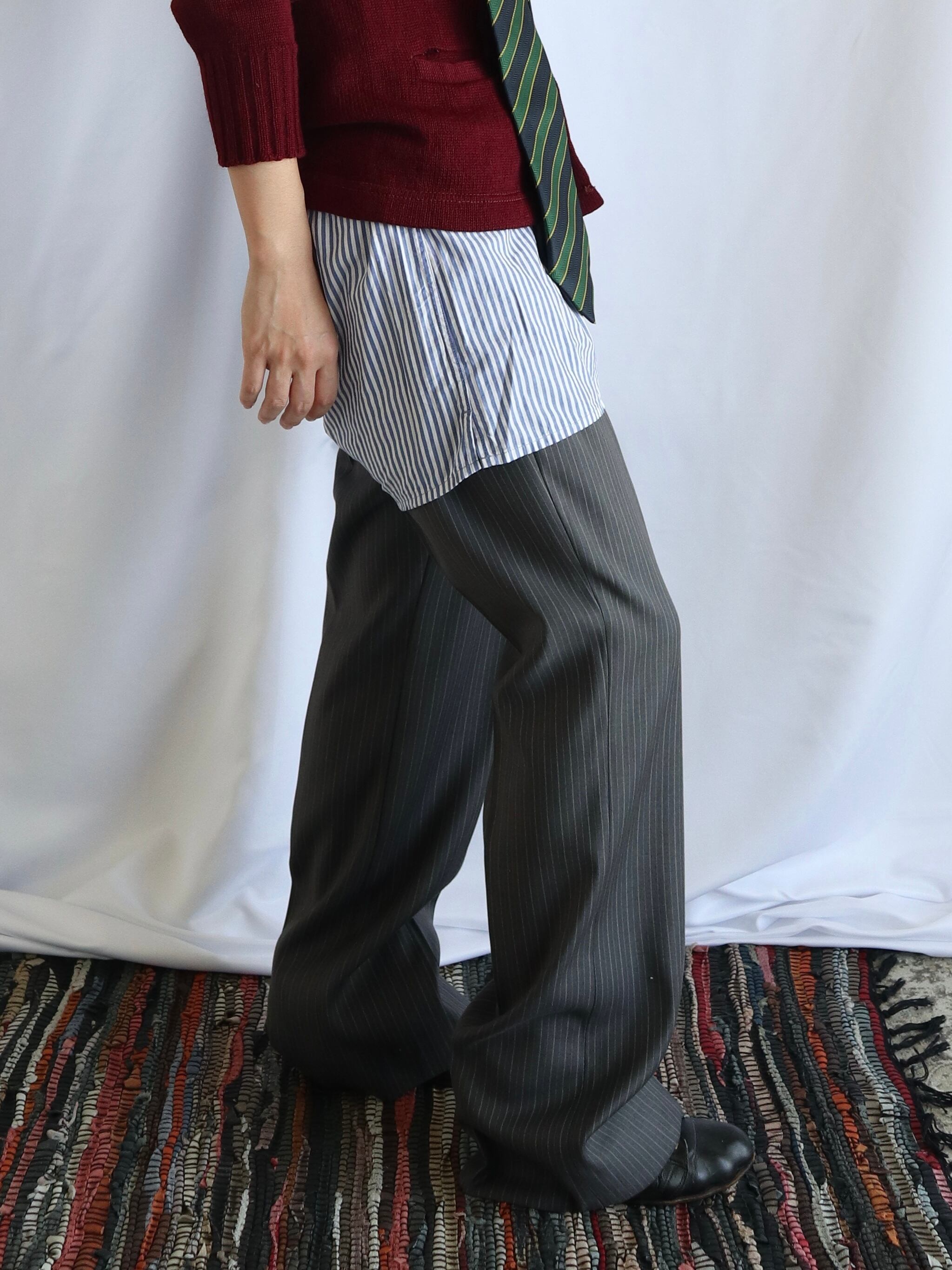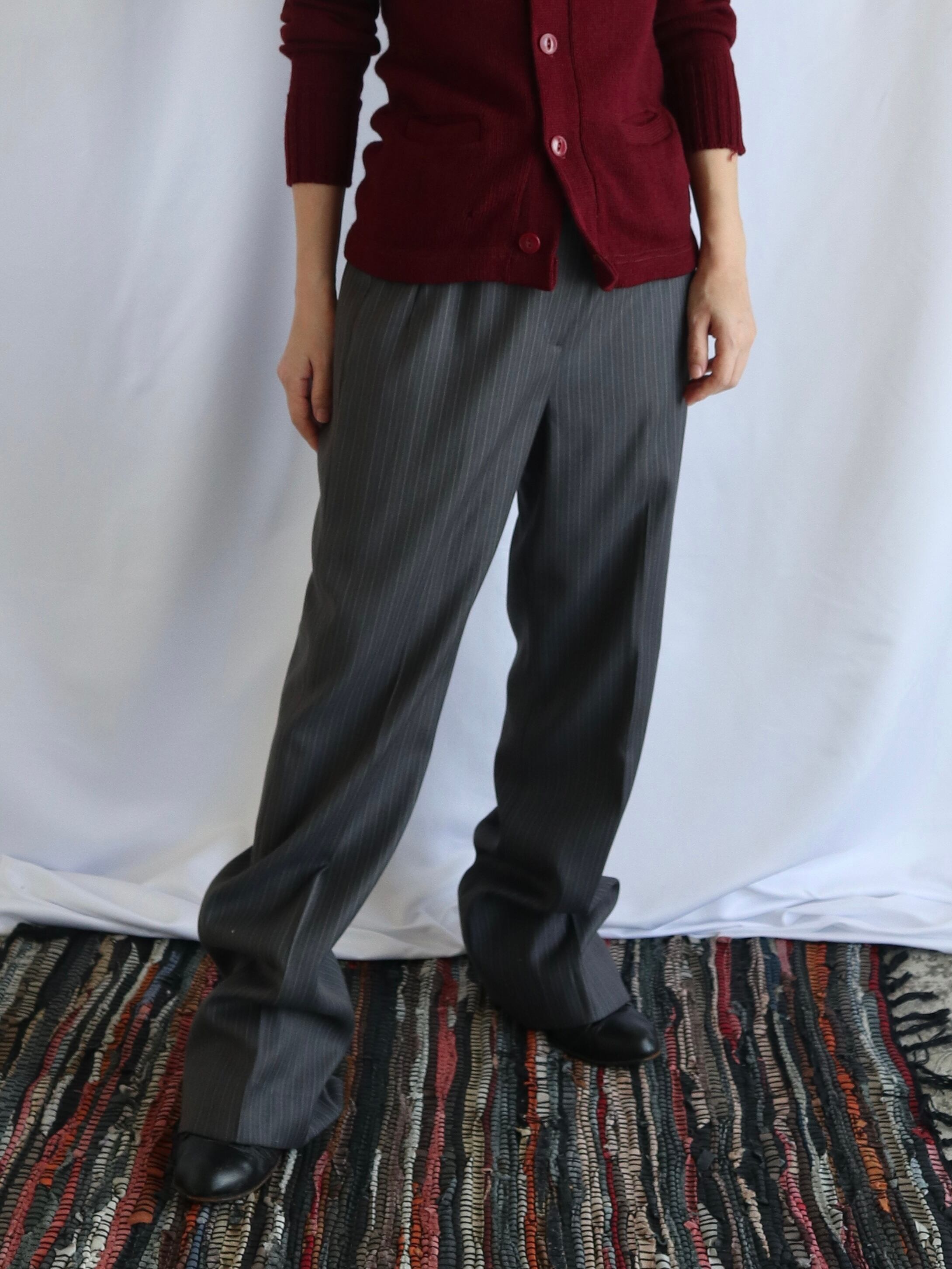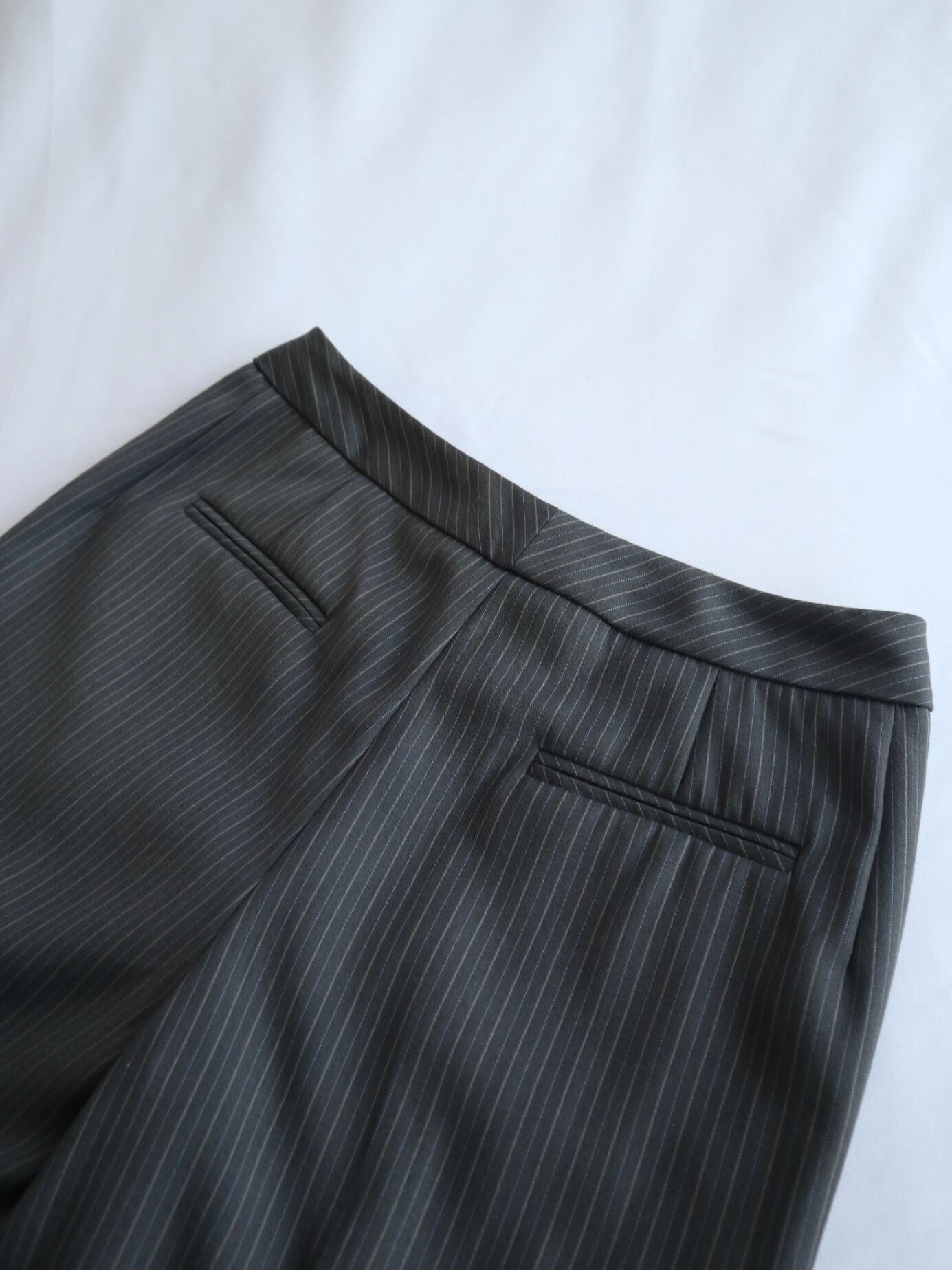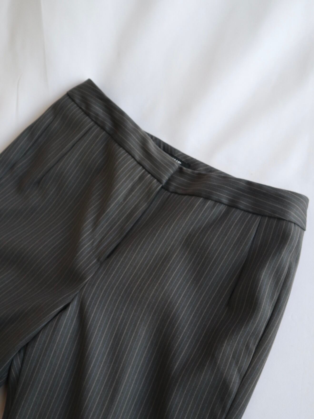 落ち着いたグレーの色味にさりげないストライプが上品なスラックスです。