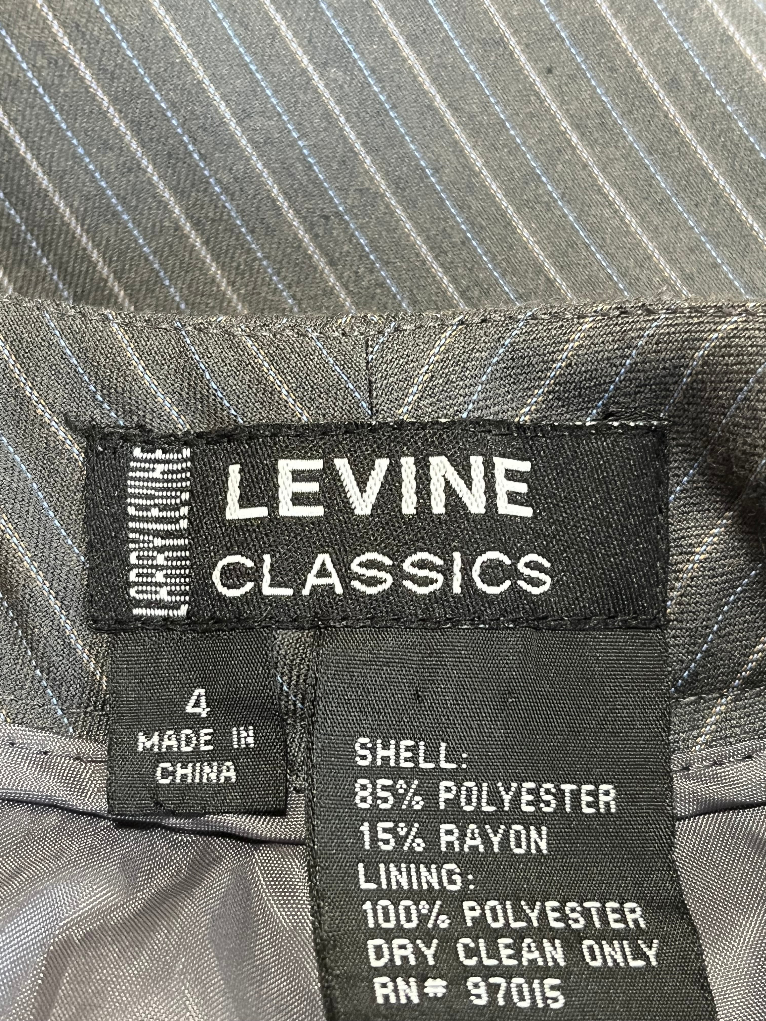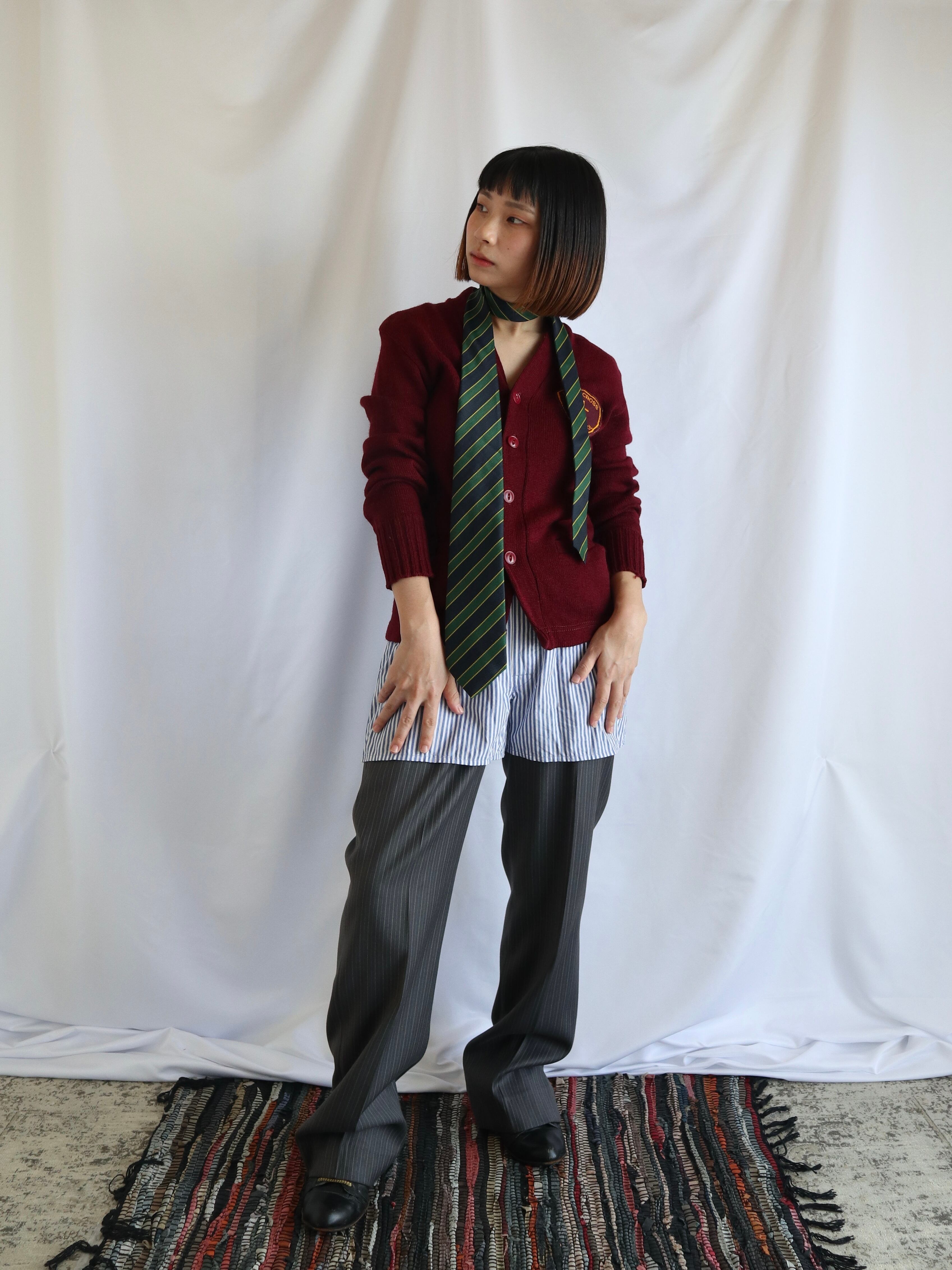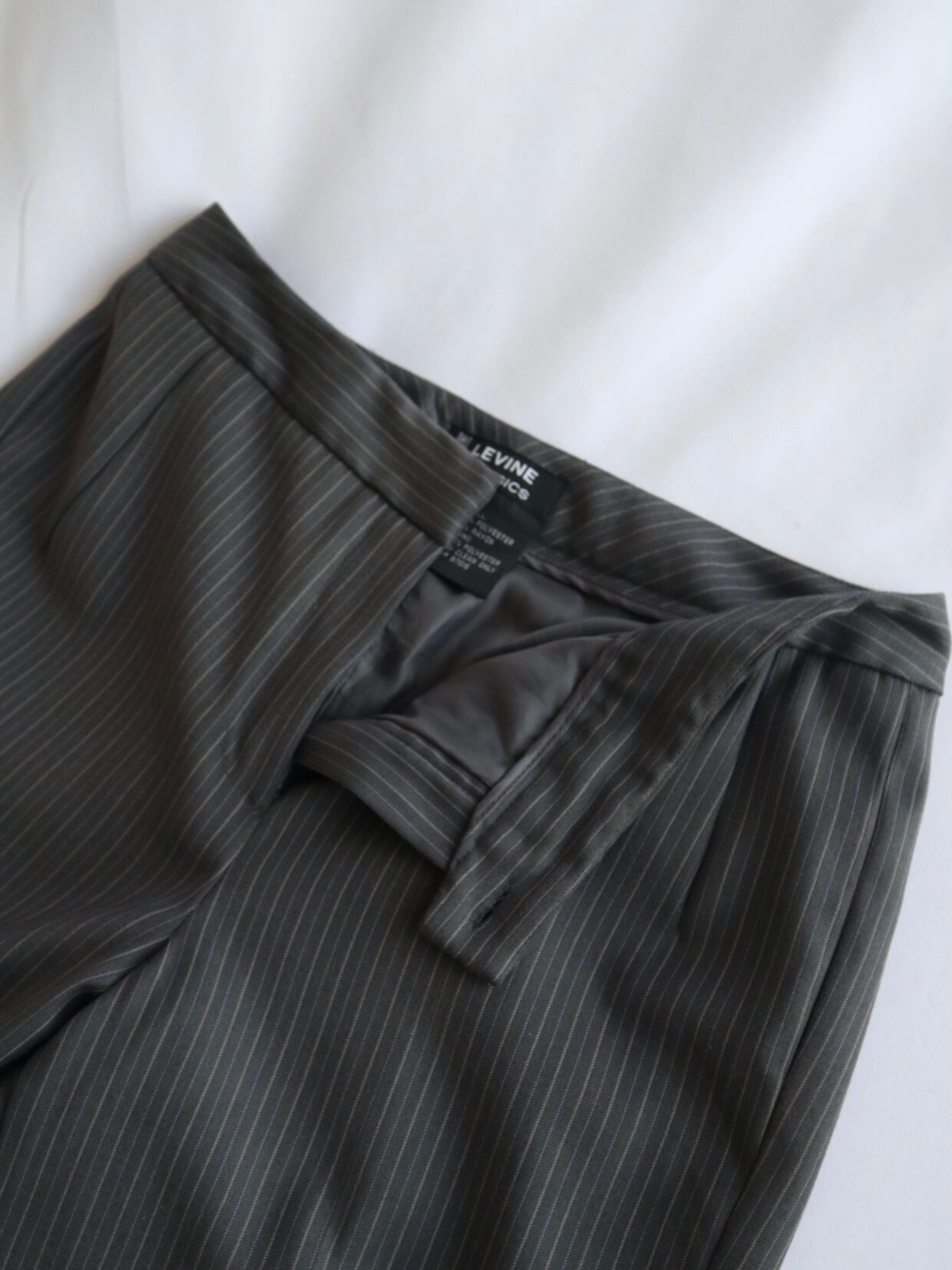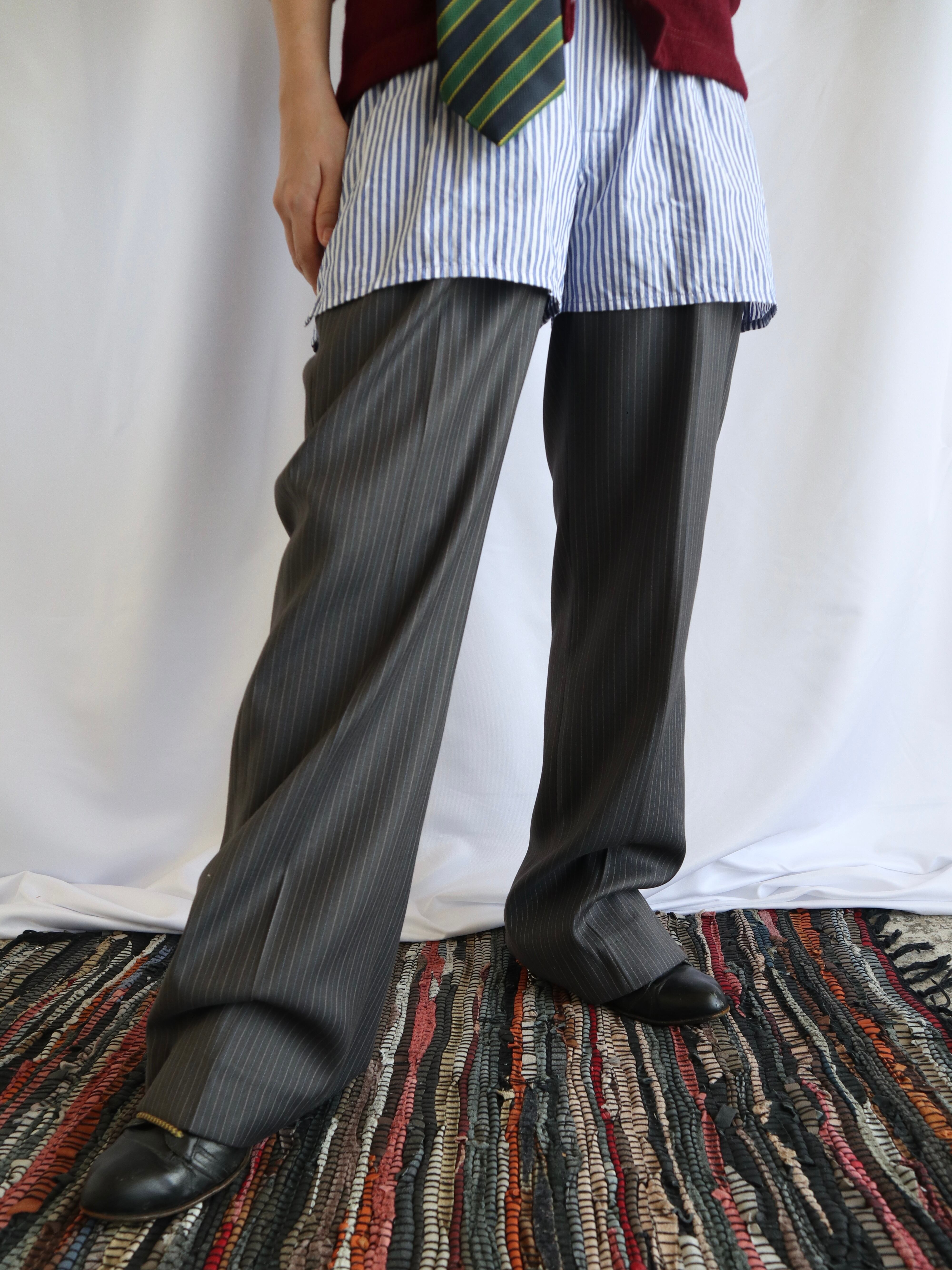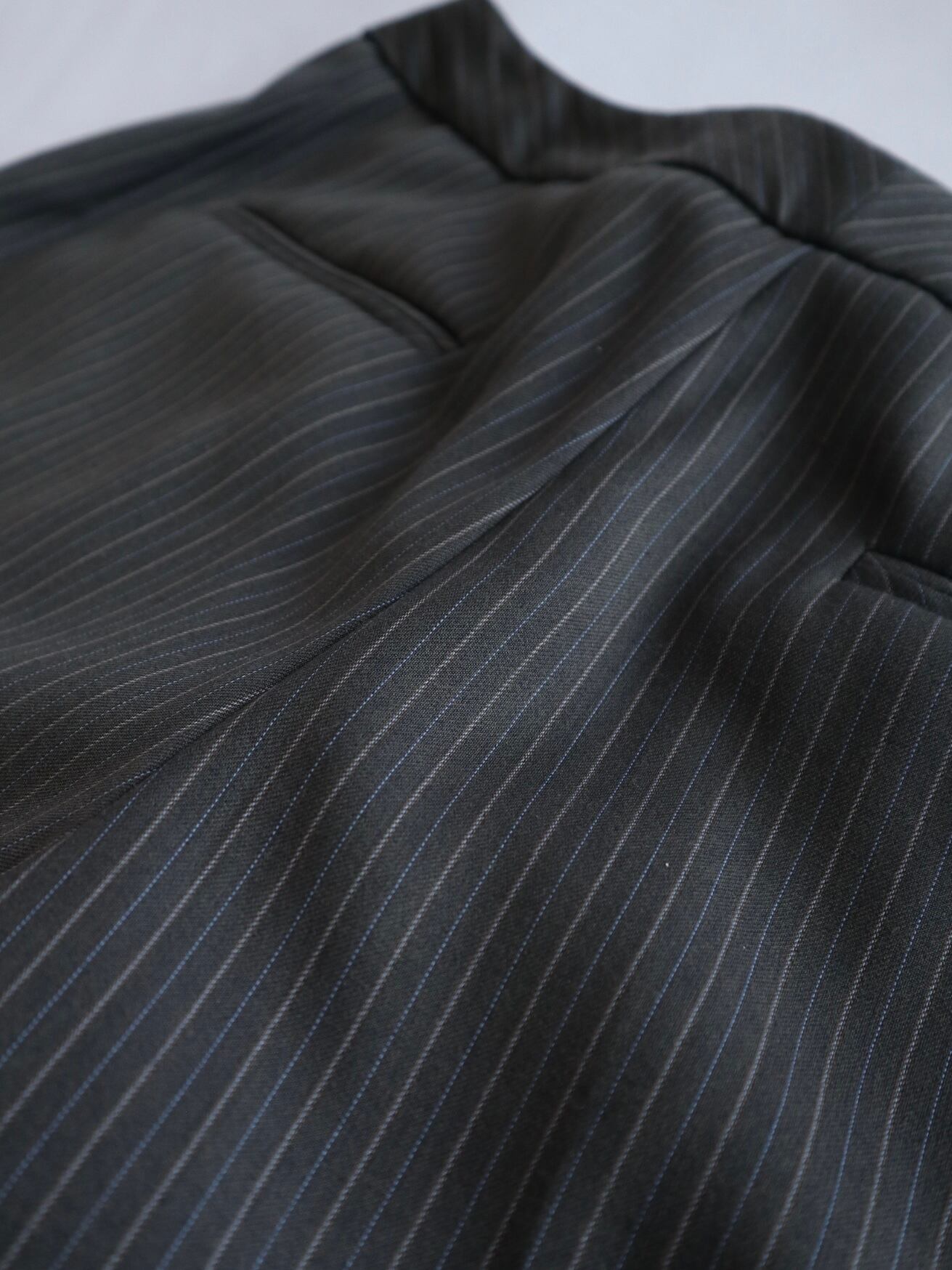 落ち着いたグレーの色味にさりげないストライプが上品なスラックスです。