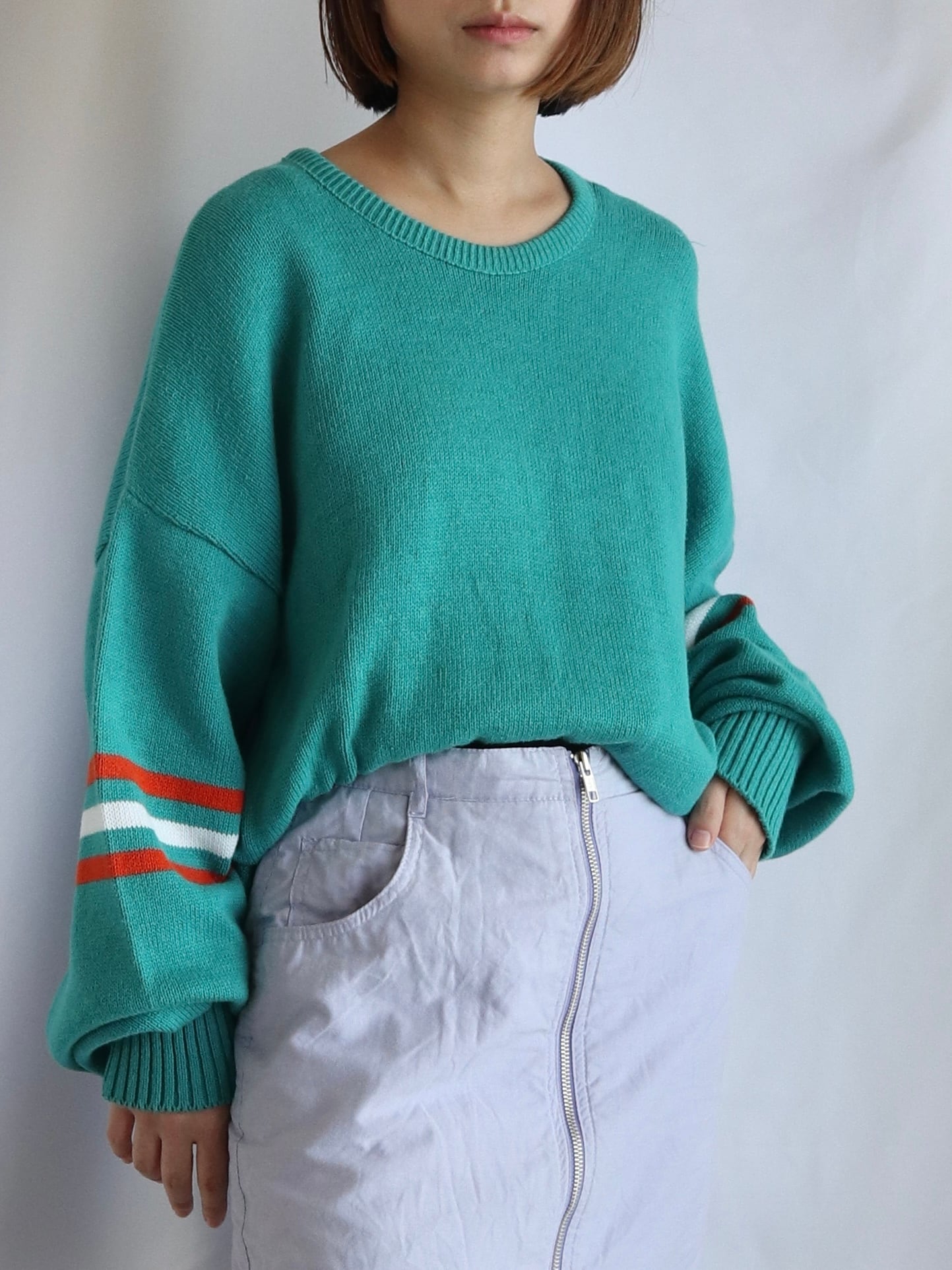 袖のラインがアクセントのセーター。