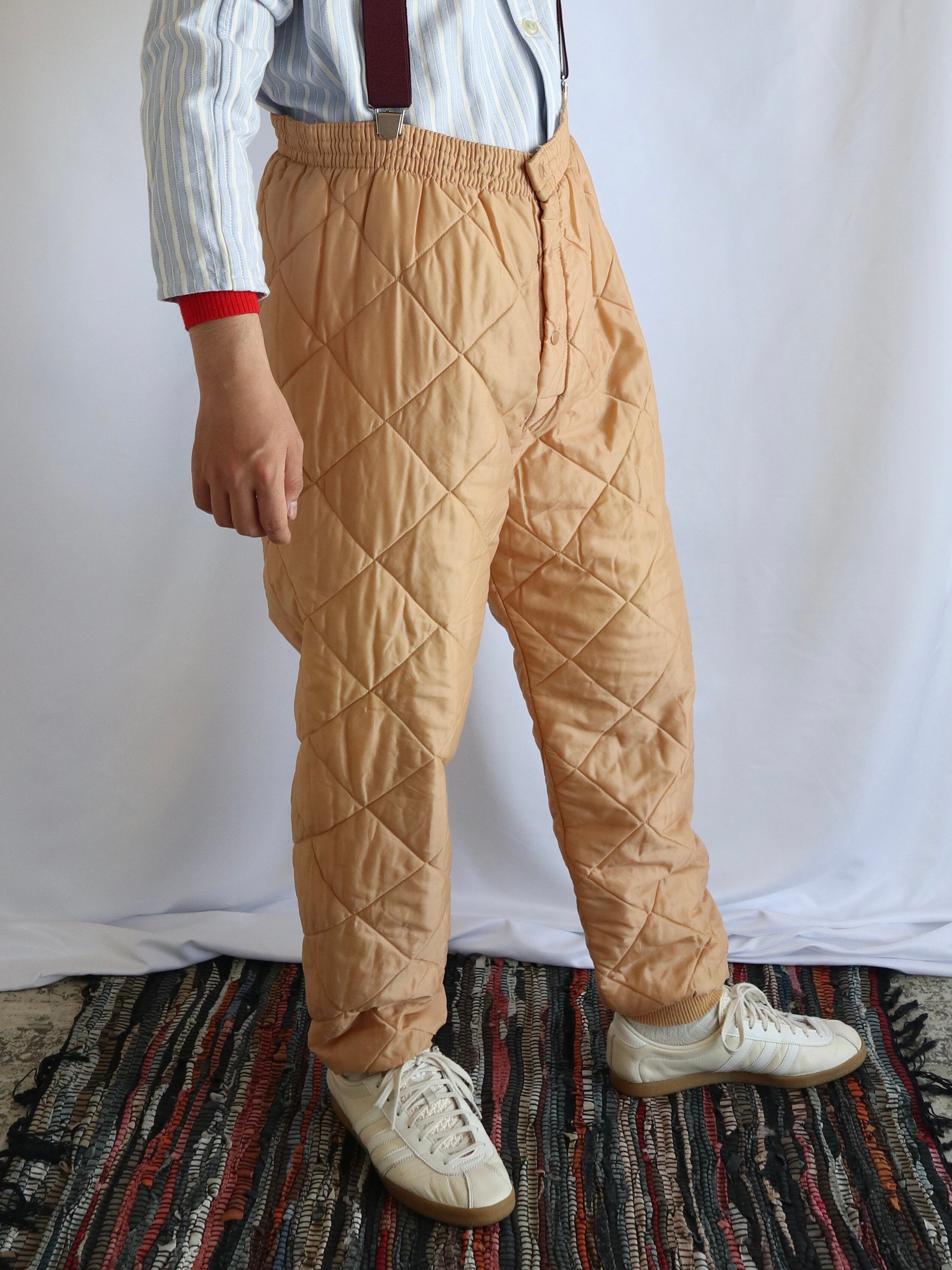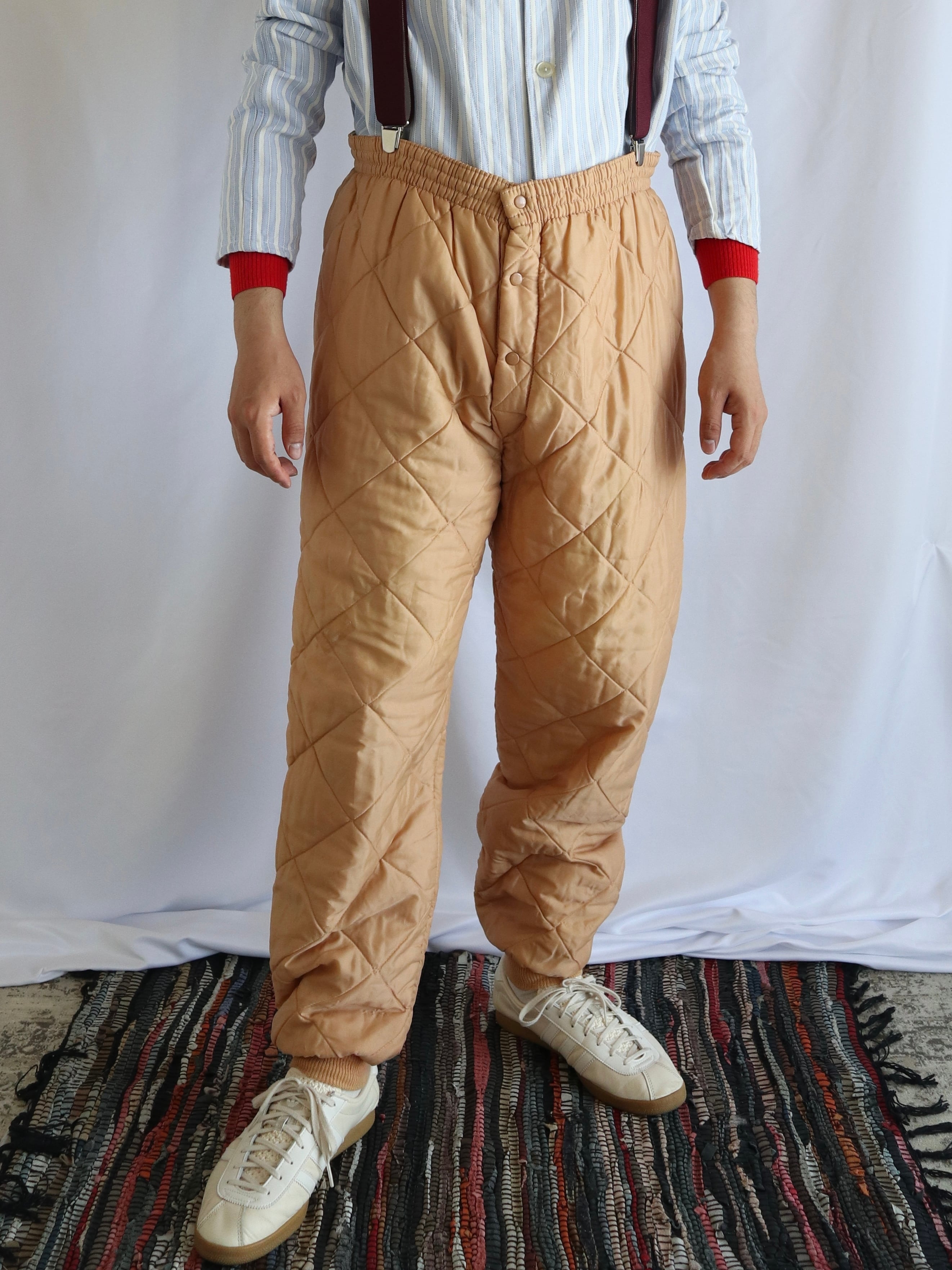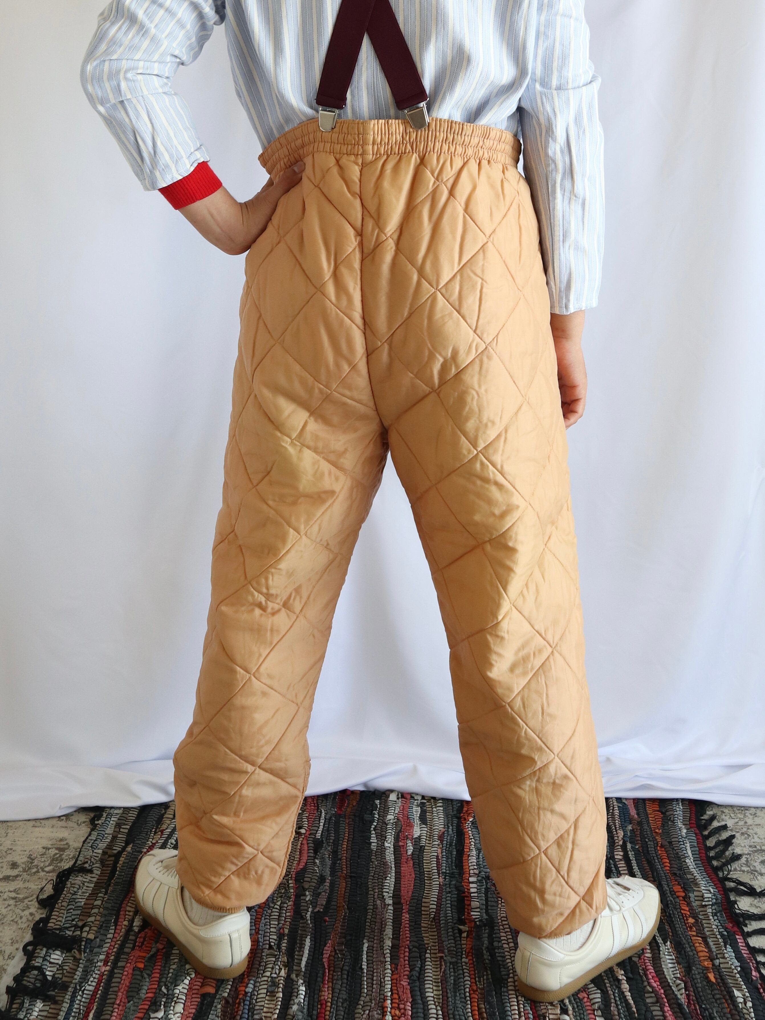 中綿入りの軽くてあたたかいキルティングパンツです。