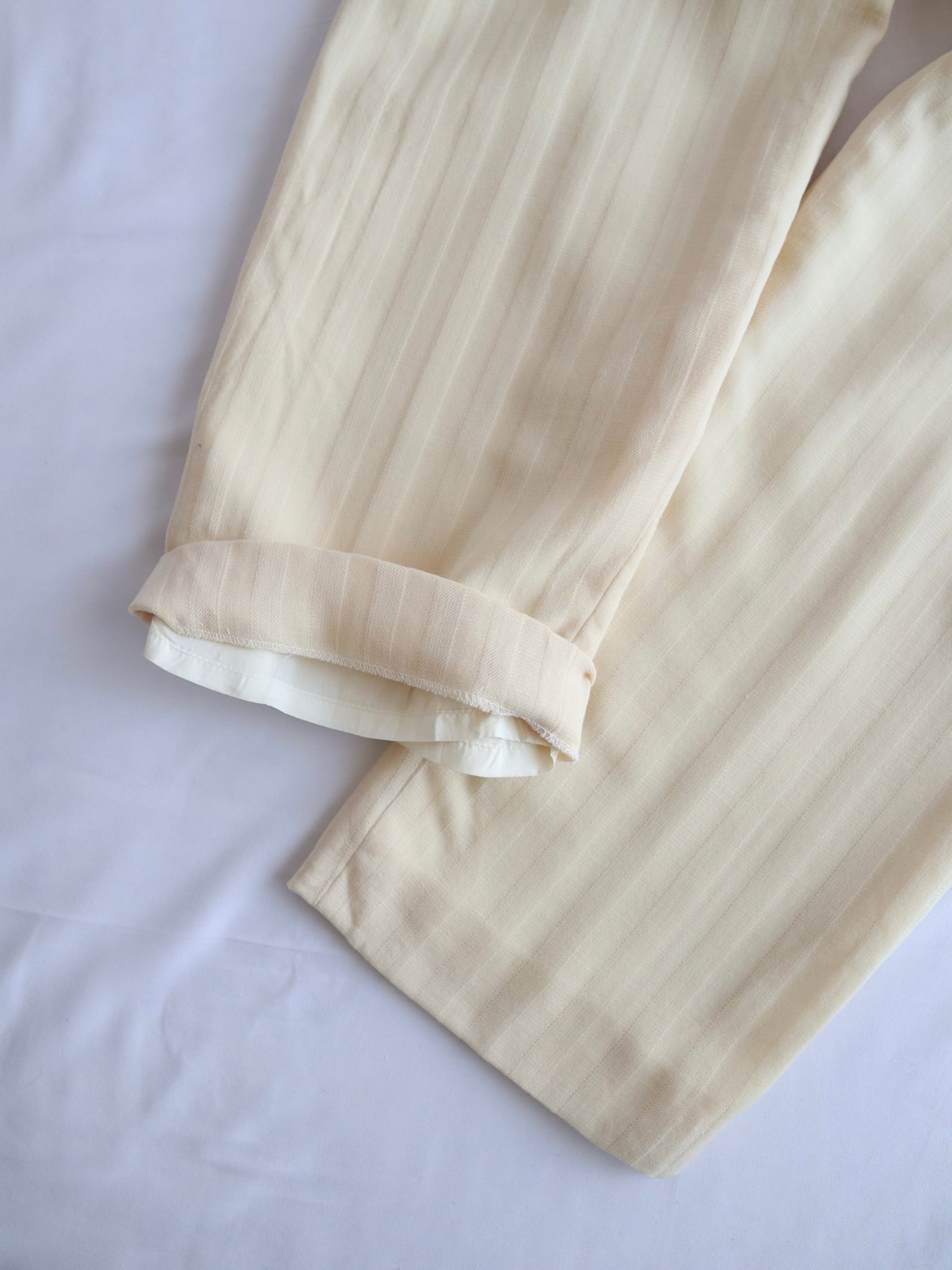 さらにウールが100%使用された生地なので、見た目はもちろん上下ともに裏地がついているため寒い時期でもあたたかく快適に過ごすことができます。