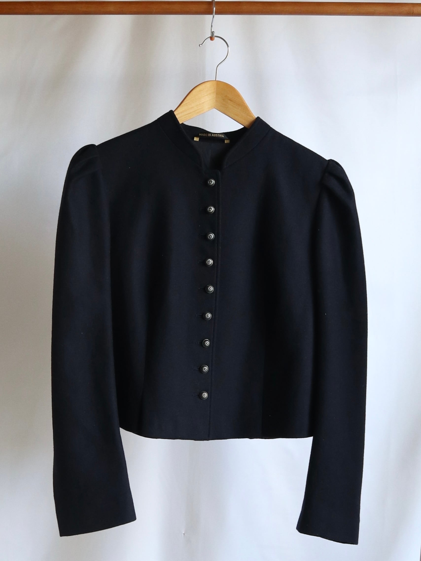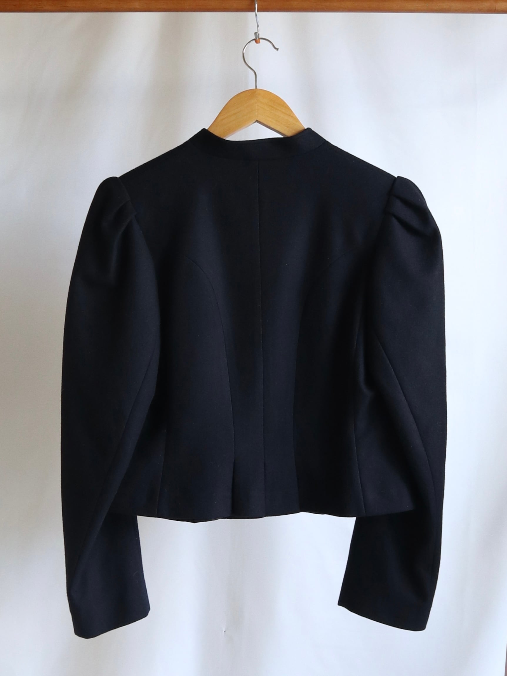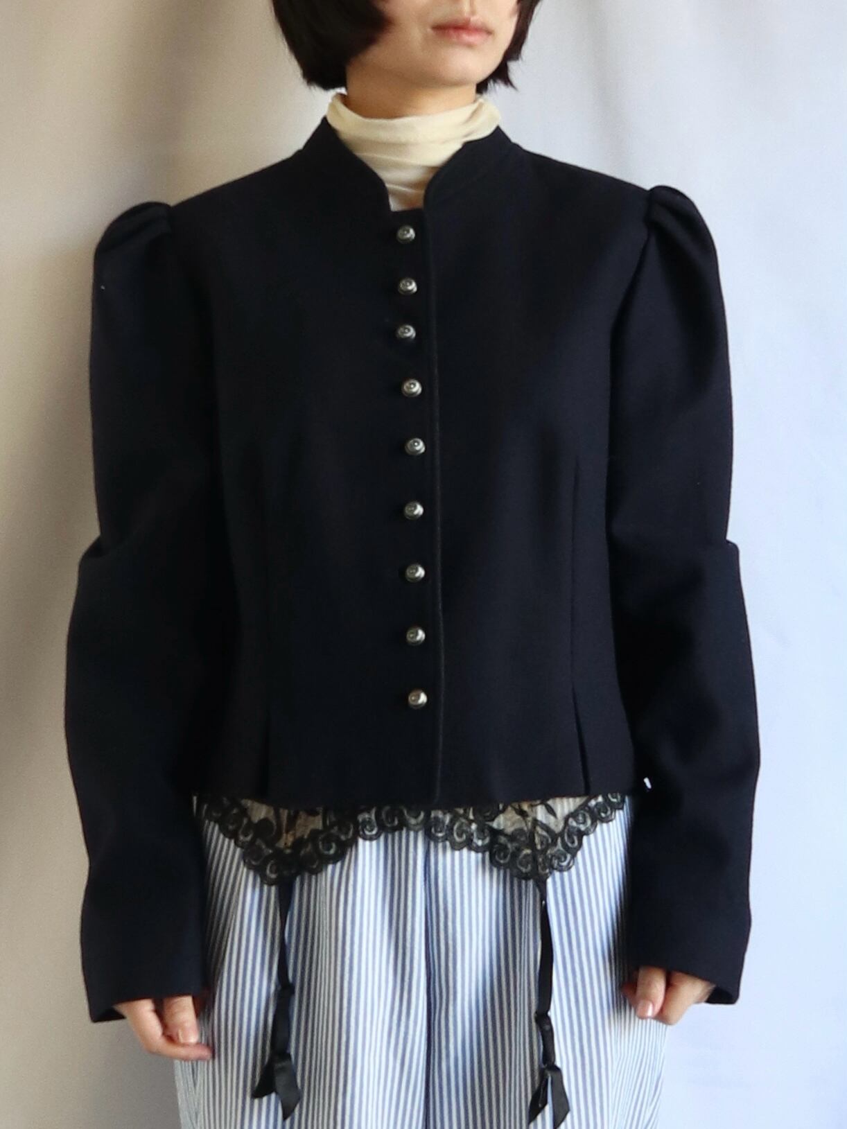 腰位置が高く見える短めの丈と、ボリュームのある肩のデザインはスタイルにメリハリが生まれます。
